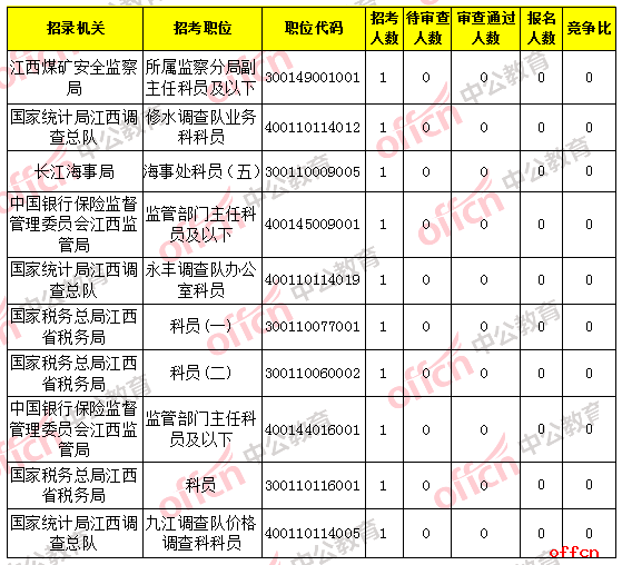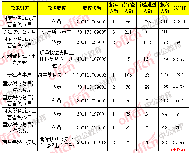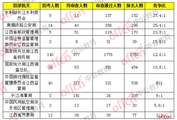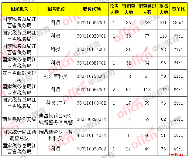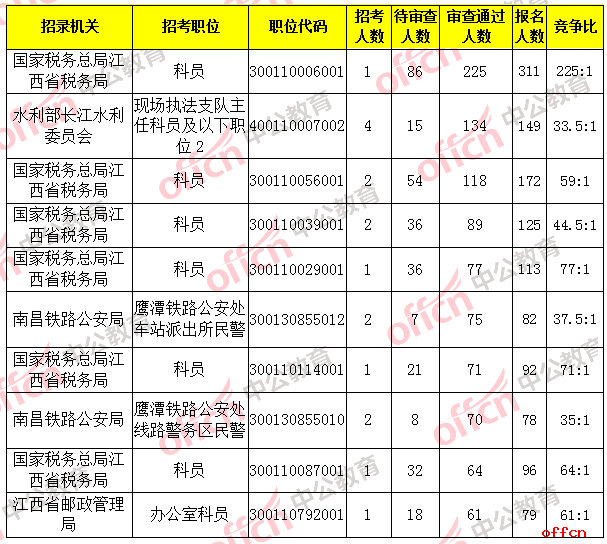國(guó)考江西報(bào)名通過(guò)審核人數(shù)前十職位