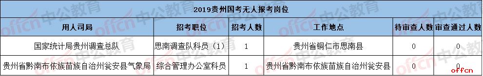 2019國家公務(wù)員考試報名已開始,今日為報名第七天,截至10月28日9時,據(jù)統(tǒng)計,國考職位中工作地點在貴州的職位報名人數(shù)達到27108人,通過審核總?cè)藬?shù)為23648人,共有2個職位無人報考,已審核通過競爭比例為67.2:1。