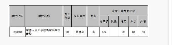 2018北京海淀區(qū)人大附中翠微學校普通班中考分數(shù)線:504分