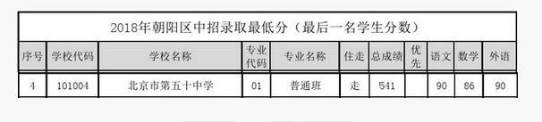 2018年北京五十中學(xué)在朝陽(yáng)區(qū)中考分?jǐn)?shù)線:541分