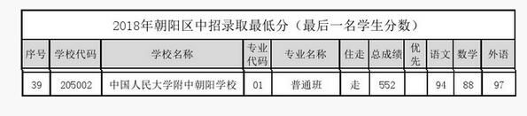 2018中國(guó)人民大學(xué)附中朝陽(yáng)學(xué)校在朝陽(yáng)區(qū)中考分?jǐn)?shù)線:552分