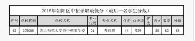 2018年東北師范大學附中朝陽學校在朝陽區(qū)中考分數(shù)線:529分