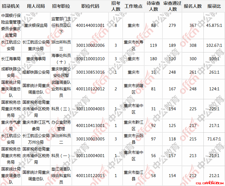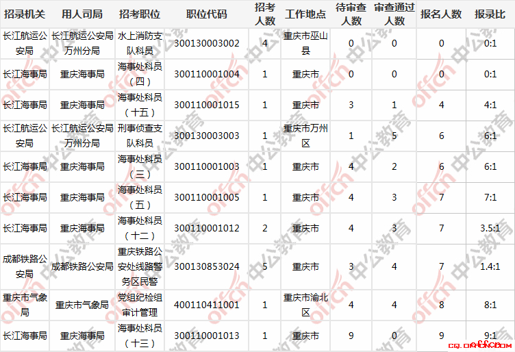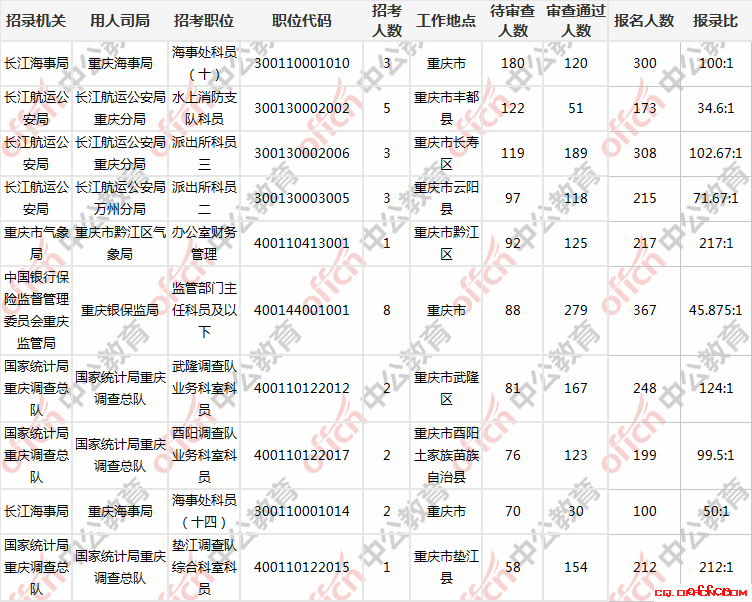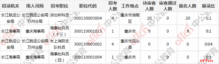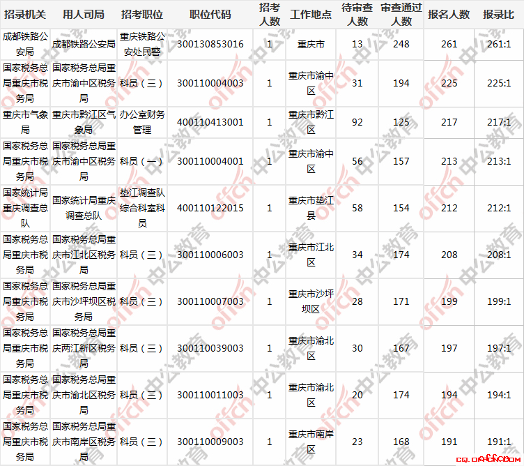 截止29日9時,重慶共有4個崗位無人過審,3個崗位待審人數(shù)超過一百。報考這些崗位的同學需耐心等待。