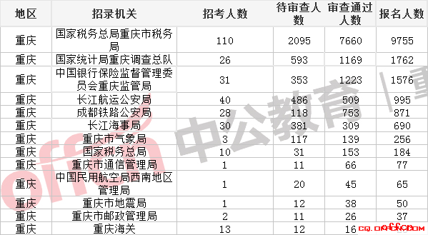 2019國考報名統(tǒng)計:重慶261人爭一職位(29日9時)