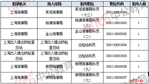 截止到29日16時,工作地點在上海的職位共有7個無人報考,占全部職位的2.4%。下面是無人報考職位一覽表,專家建議廣大考生多關(guān)注一些較冷職位,避免激烈競爭,結(jié)合自身條件,找到屬于自己的最佳職位。
