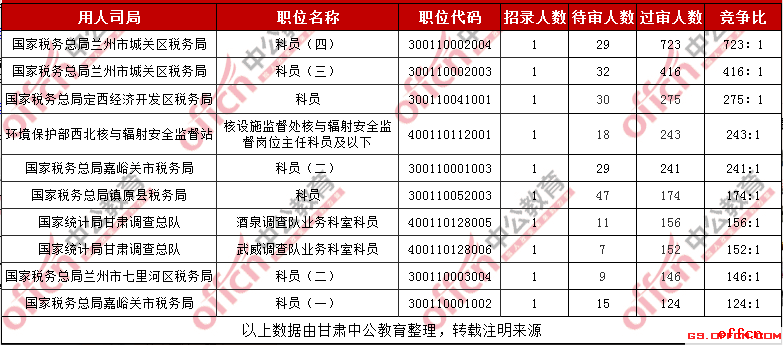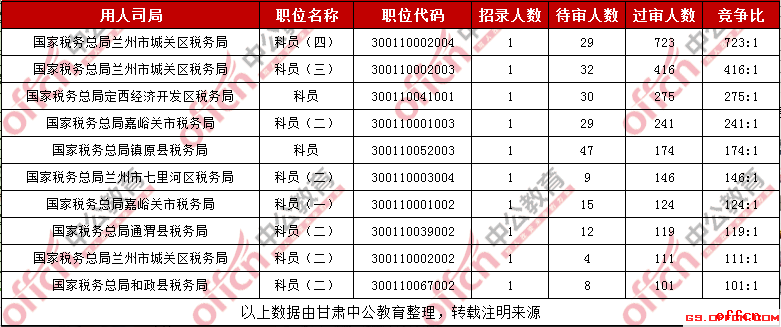 2019國(guó)考甘肅考區(qū)國(guó)稅系統(tǒng)過(guò)審人數(shù)最多的十大職位(截至29日16時(shí))