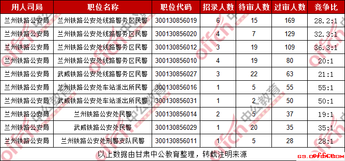 2019國(guó)考甘肅考區(qū)蘭州鐵路局過(guò)審人數(shù)最多的十大職位(截至29日16時(shí))