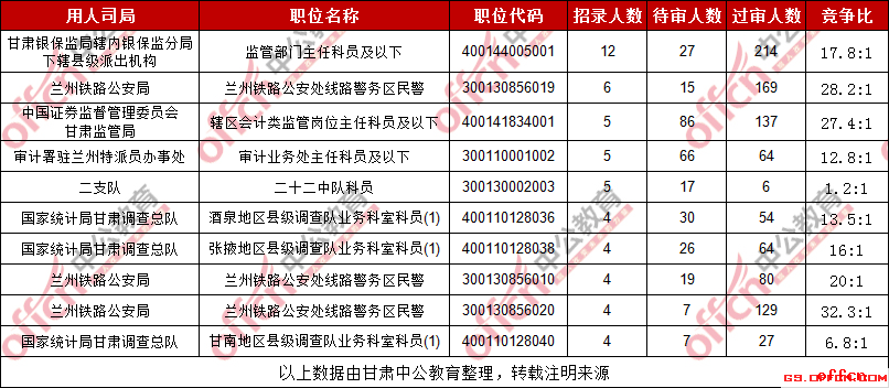 2019國(guó)考甘肅考區(qū)過(guò)審人數(shù)最多的十大職位(截至29日16時(shí))