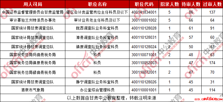 2019國(guó)考甘肅考區(qū)待審人數(shù)最多的十大職位(截至29日16時(shí))