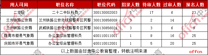 2019國(guó)考甘肅考區(qū)招錄人數(shù)最多職位報(bào)名人數(shù)統(tǒng)計(jì) (截至29日16時(shí))