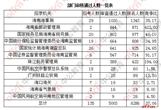 為幫助廣大考生更清晰的了解今日報名情況,整理了部門審核通過人數(shù)一覽表以及部門競爭比例情況一覽表,供廣大考生參考:
