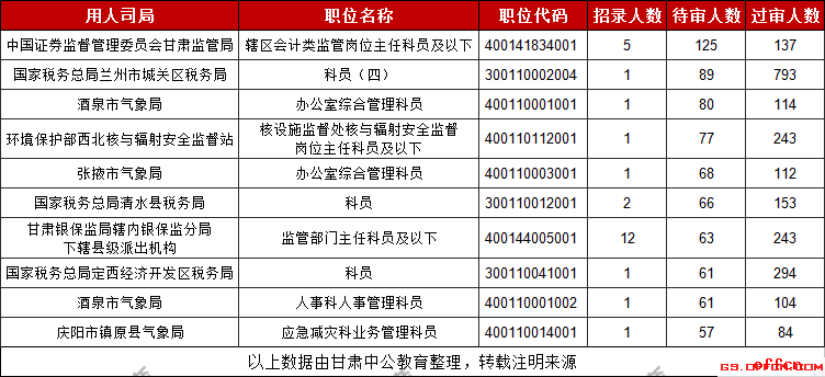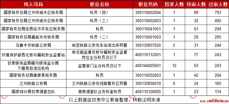 2019甘肅國考待審人數(shù)最多的十大職位(截至30日9時)