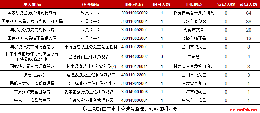 2019甘肅國考無人待審職位(截至30日9時)