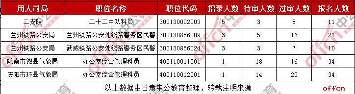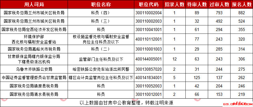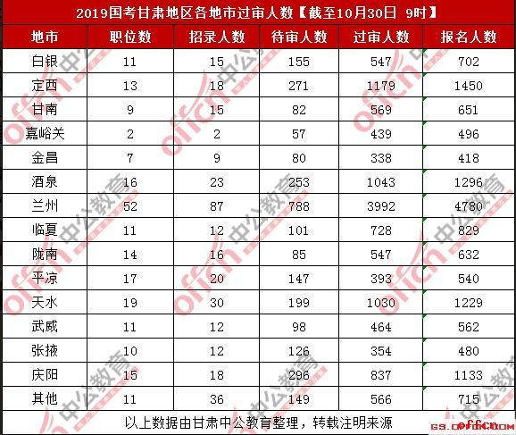 2019甘肅國考過審人數(shù)最多的十大職位(截至30日9時)