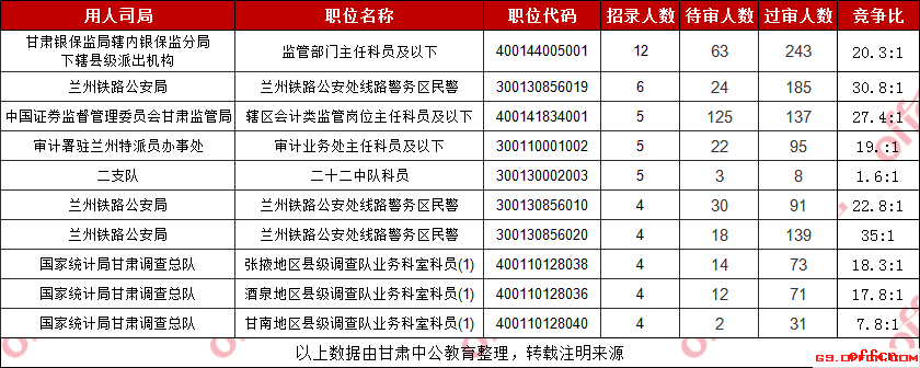 2019甘肅國考過審人數(shù)最激烈的十大職位(截至30日9時)