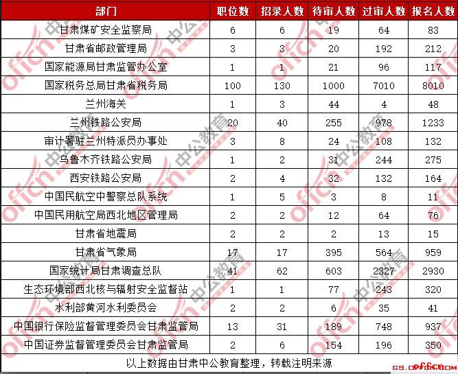 2019甘肅國考各部門報名人數(shù)統(tǒng)計(截至30日9時)