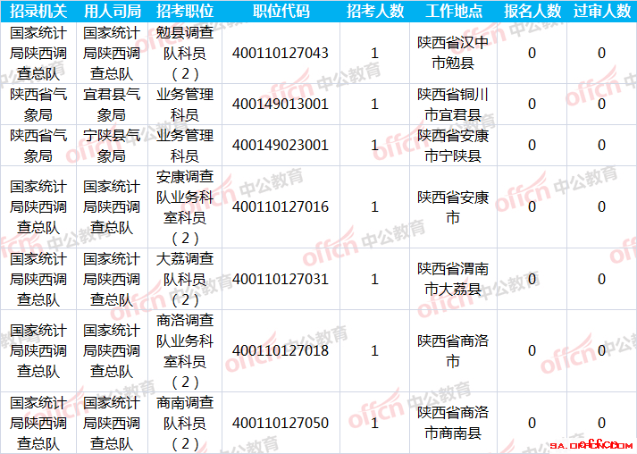 截止到30日16時,工作地點在陜西的職位共有7個無人報考,占全部職位的3.07%。下面是無人報考職位一覽表,專家建議廣大考生多關注一些較冷職位,避免激烈競爭,結合自身條件,找到屬于自己的最佳職位。