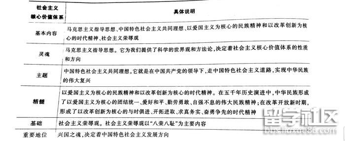社會主義核心價值體系的具體說明如下表所示: