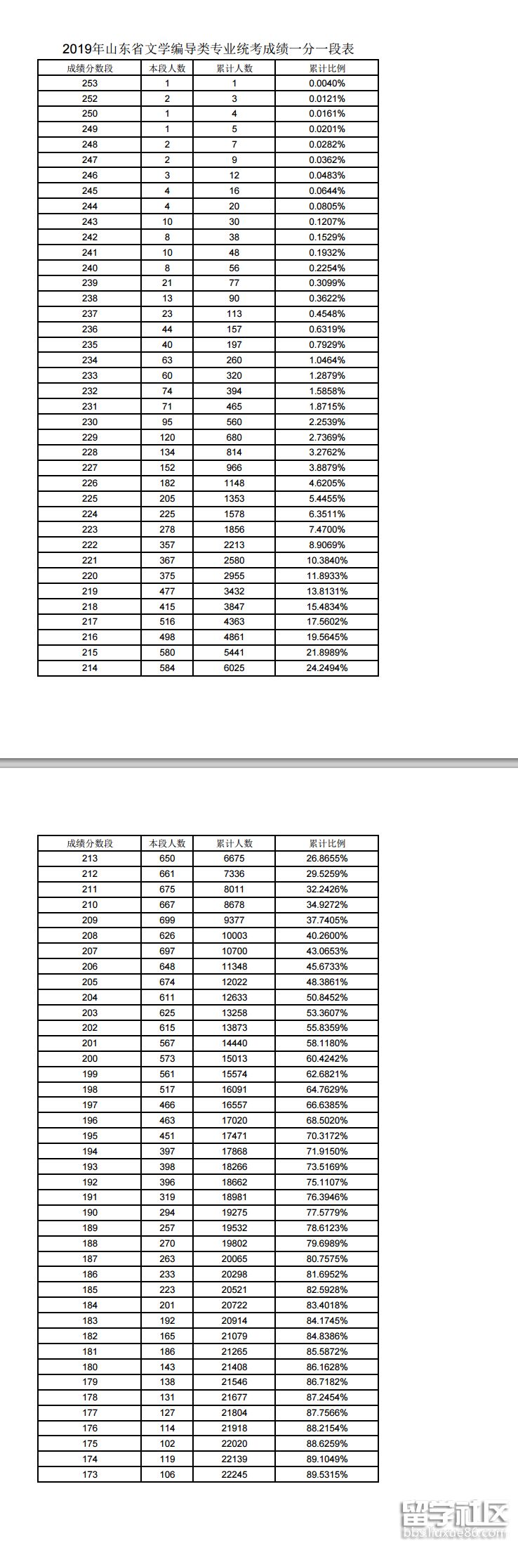 2019山東省文學(xué)編導(dǎo)類專業(yè)統(tǒng)考成績一分一段表