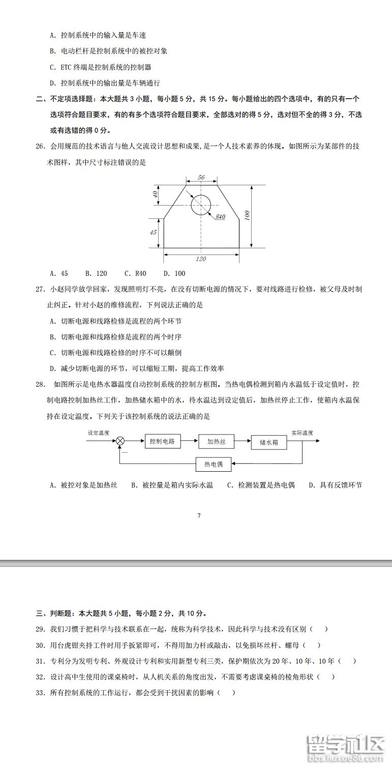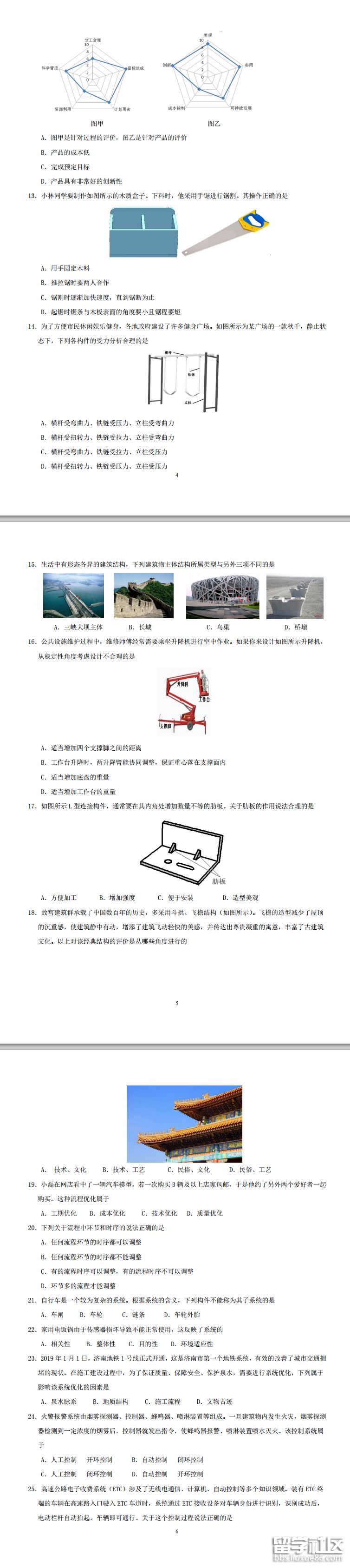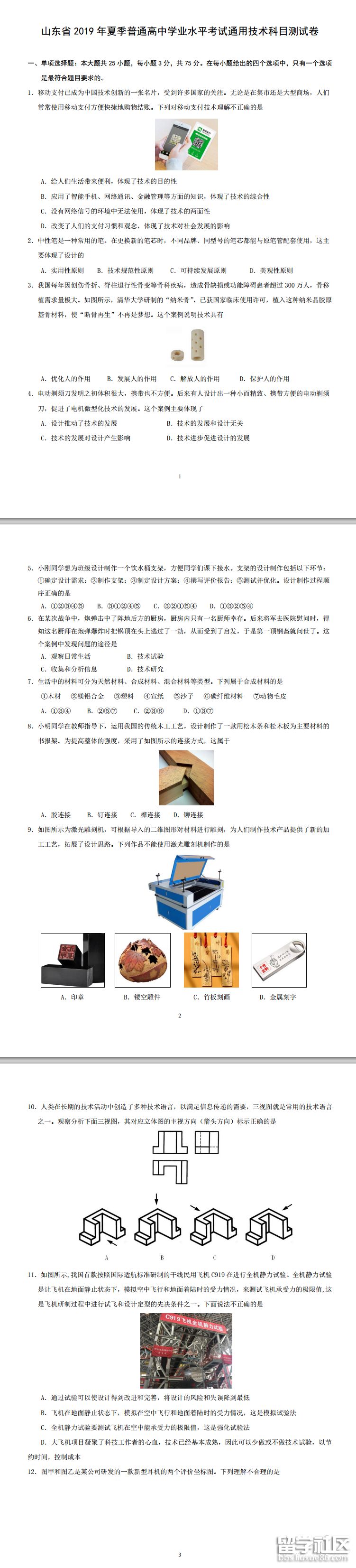 山東2019夏季普通高中學(xué)業(yè)水平考試通用技術(shù)試卷