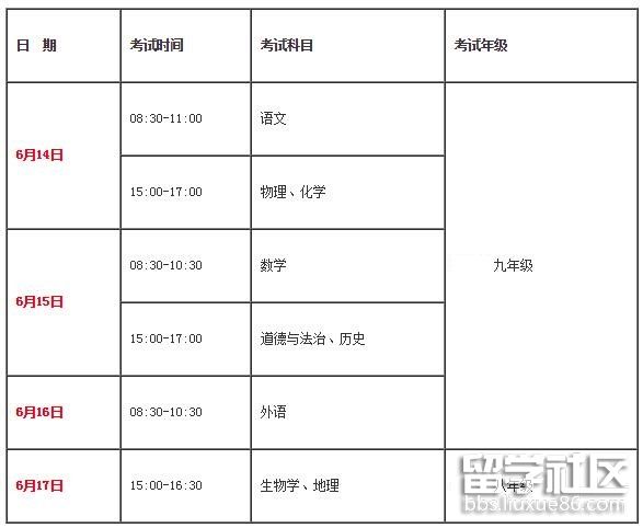 6月14日:08:30-11:00 語文 閉卷;15: 00-17:00 物理、化學(xué) 閉卷