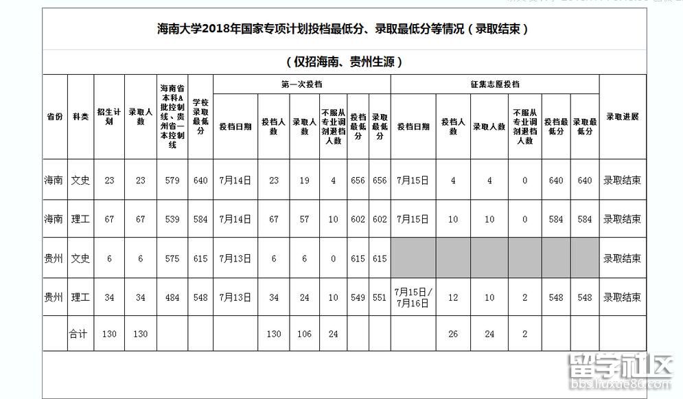 海南大學(xué)2018國(guó)家專項(xiàng)計(jì)劃分?jǐn)?shù)線(海南、貴州)
