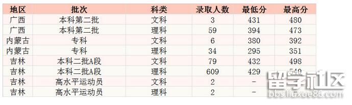 普通本科錄取結(jié)束的有吉林二本A段、廣西2個(gè)省,共錄取754人。普通專科錄取結(jié)束的有內(nèi)蒙古1個(gè)省,共錄取40人。