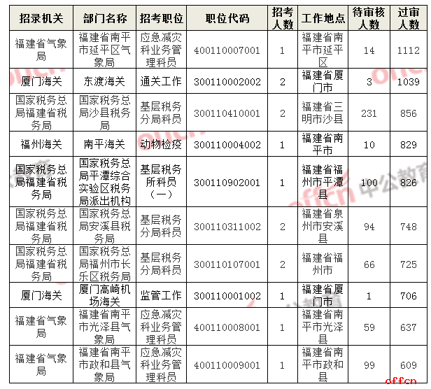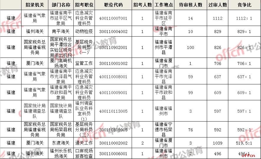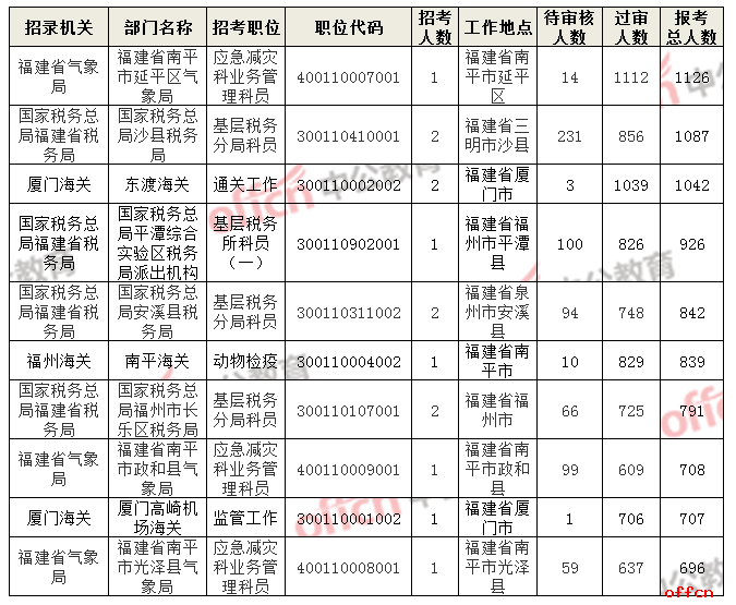 福建2019國(guó)考報(bào)名審核通過(guò)前十的職位表