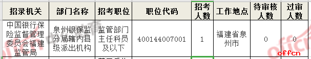 截止10月31日17:30,福建2019國(guó)考報(bào)名審核尚有1個(gè)無(wú)人報(bào)考職位,下圖中僅剩的這1個(gè)招考職位又從待審核狀態(tài)成為國(guó)考無(wú)人報(bào)考職位,或許是由于招考條件等客觀原因,導(dǎo)致該職位成為2019國(guó)考福建地區(qū)唯一一個(gè)無(wú)人過(guò)審的職位。國(guó)考報(bào)名工作已經(jīng)結(jié)束,已經(jīng)完成報(bào)考的考生們不要忘記接下來(lái)的國(guó)考繳費(fèi)哦!