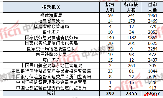 2019國(guó)考報(bào)名統(tǒng)計(jì):福建32667人過(guò)審 1個(gè)崗位無(wú)人過(guò)審(31日17時(shí)30)