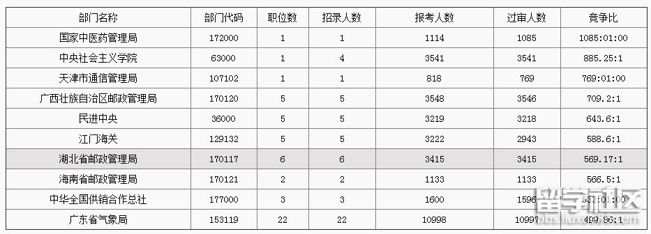 2019國(guó)考競(jìng)爭(zhēng)比排前十名部門(mén)