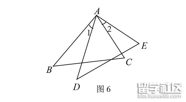 例4、如圖6,已知AB=AD,AC=AE ,∠1=∠2 .試說明BC=DE.