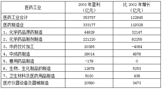 4.1.2003年,醫(yī)藥工業(yè)總的盈利比2002年增長( )。