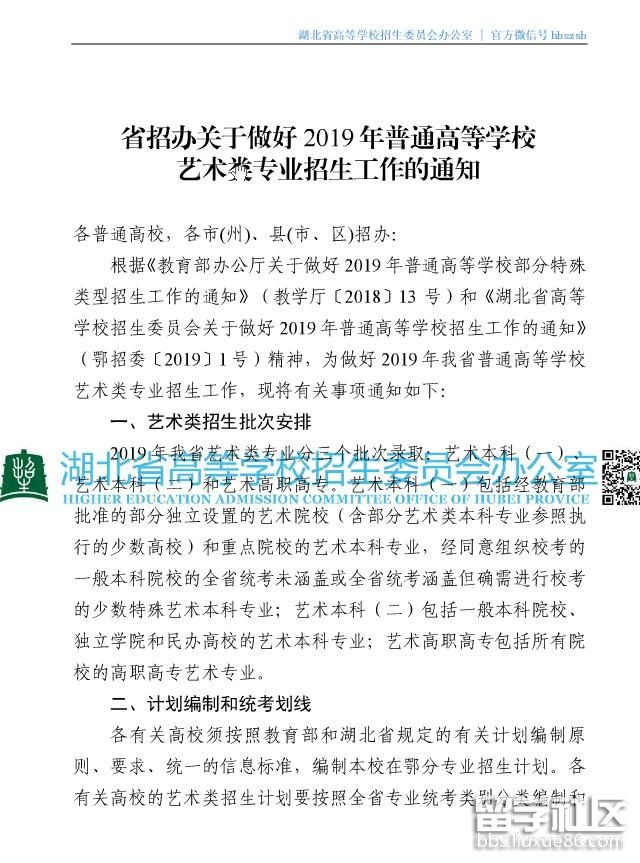 湖北2019普通高等學(xué)校藝術(shù)類專業(yè)招生工作的通知