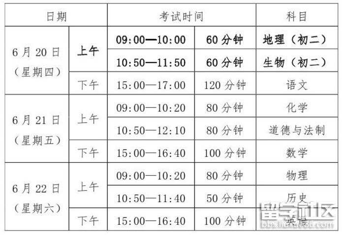 (一) 2019年初中學業(yè)水平考試時間安排如下: