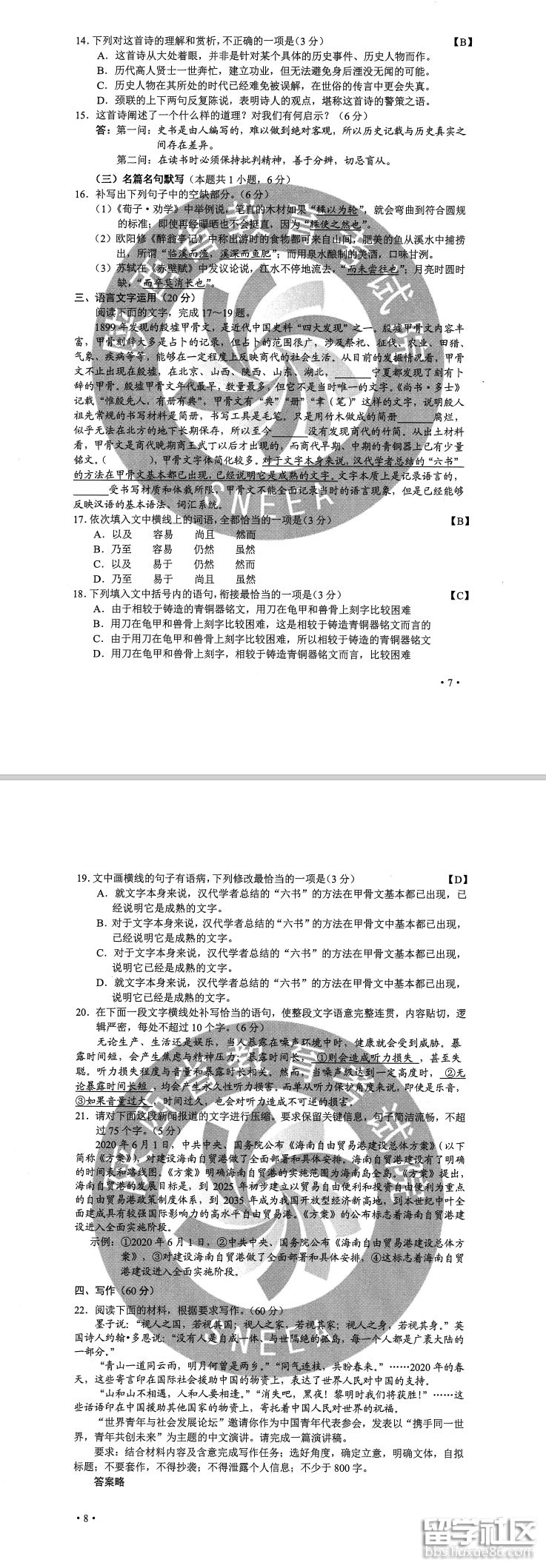 全國高考試題已經(jīng)陸續(xù)出完,想知道考試試題的考生趕緊了解一下,下面由出國留學(xué)網(wǎng)小編為你精心準(zhǔn)備了“2020甘肅高考語文試卷及答案(圖片版)”,持續(xù)關(guān)注本站將可以持續(xù)獲取高考資訊!