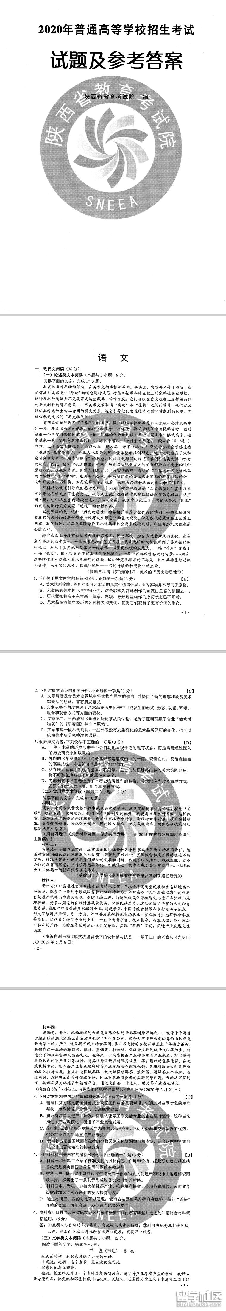 2020甘肅高考語文試卷及答案(圖片版)