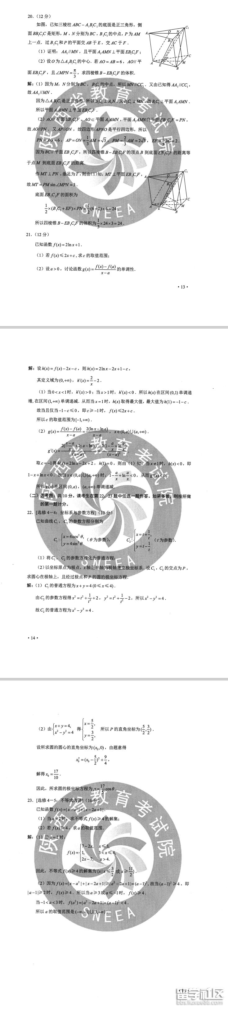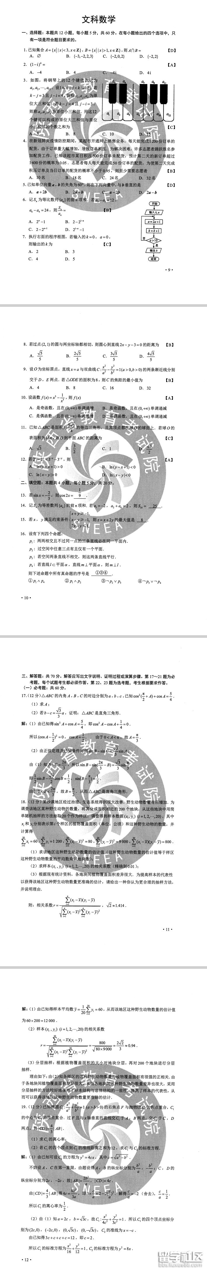 2020全國(guó)卷2高考文科數(shù)學(xué)試卷及答案(圖片版)