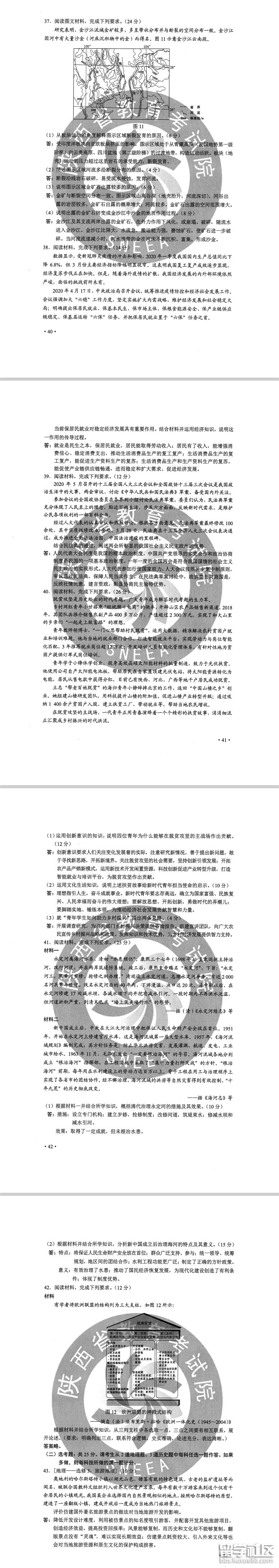 2020全國卷2高考文綜試卷及參考答案已出爐