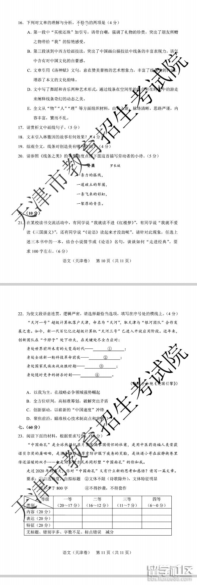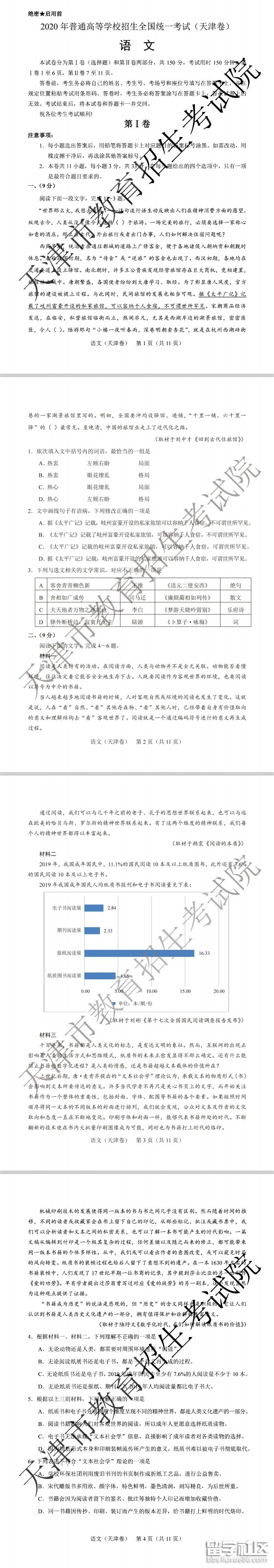 掌握高考資訊,有助提前準備好考試,下面由出國留學(xué)網(wǎng)小編為你精心準備了“2020天津高考語文試卷及答案(圖文版)”,持續(xù)關(guān)注本站將可以持續(xù)獲取高考資訊!