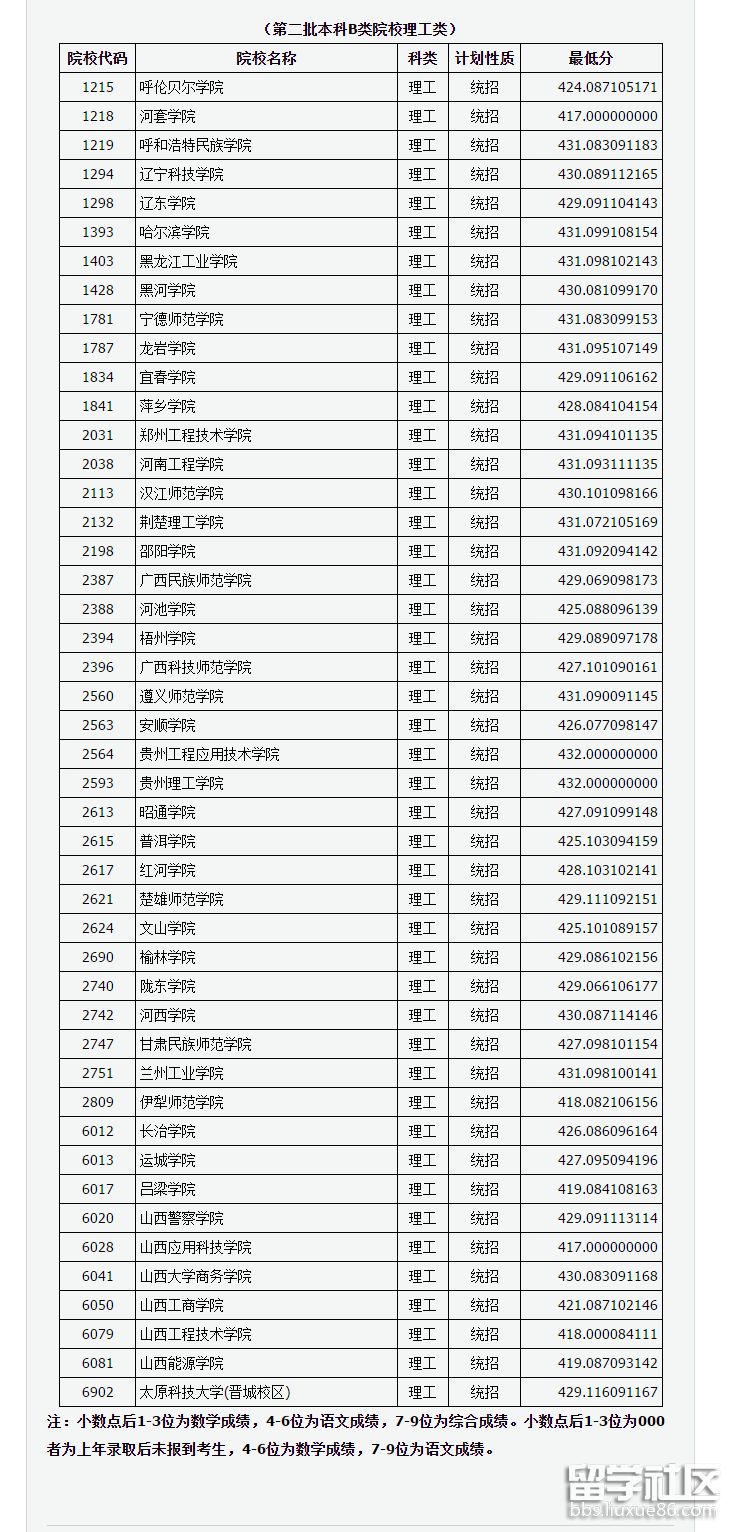 山西2018年第二批本科B類院校投檔線(文史)