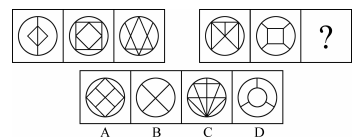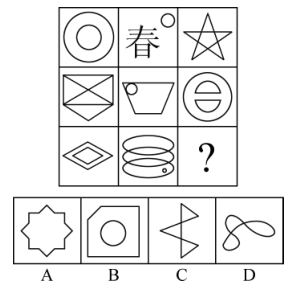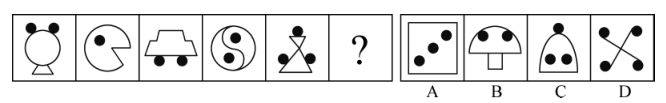 5. [解析] B。考查元素規(guī)律,每行圖形中都有兩個(gè)圖形含有圓這個(gè)元素。B項(xiàng)符合。