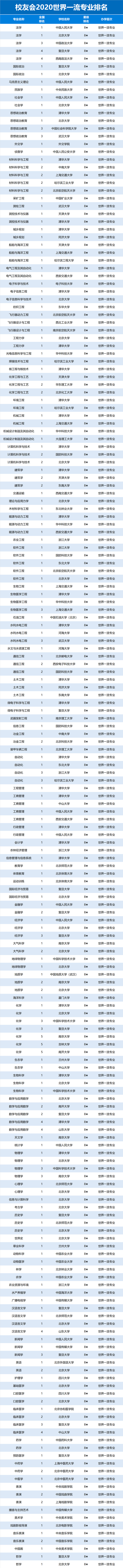 2020中國(guó)一流專業(yè)排名
