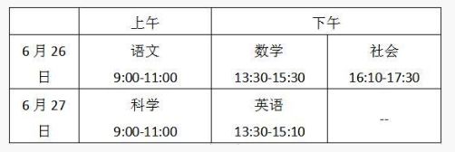 根據有關要求,中考統(tǒng)一安排在6月26日至27日。受疫情影響,今年取消中考體育測試,體育分不計入中考總分。學業(yè)水平考試各科考試時間:語文、數(shù)學、科學各120分鐘,英語100分鐘,社會80分鐘。學業(yè)水平考試分值語文、數(shù)學、英語(含聽力25分)滿分各120分,科學滿分160分,社會滿分80分,體育成績不計入總分,總分為600分。