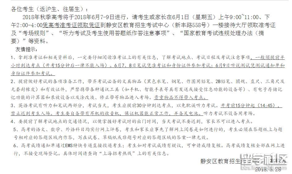 2018年上海靜安區(qū)秋季高考準(zhǔn)考證領(lǐng)取時(shí)間及地點(diǎn)