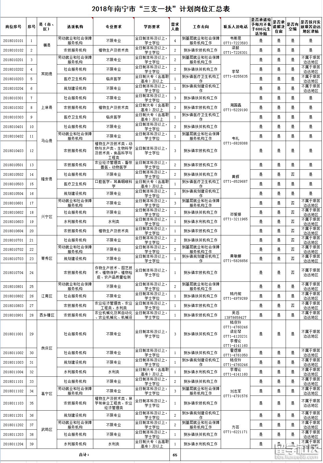 2018廣西三支一扶計劃招募崗位表