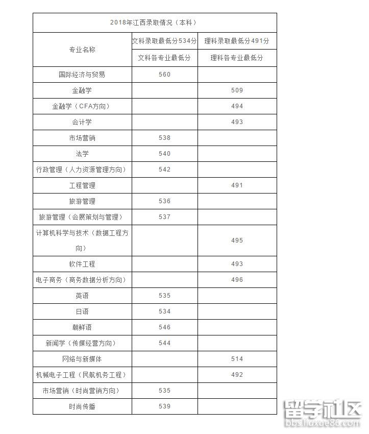 上海杉達(dá)學(xué)院2018江西本科分?jǐn)?shù)線