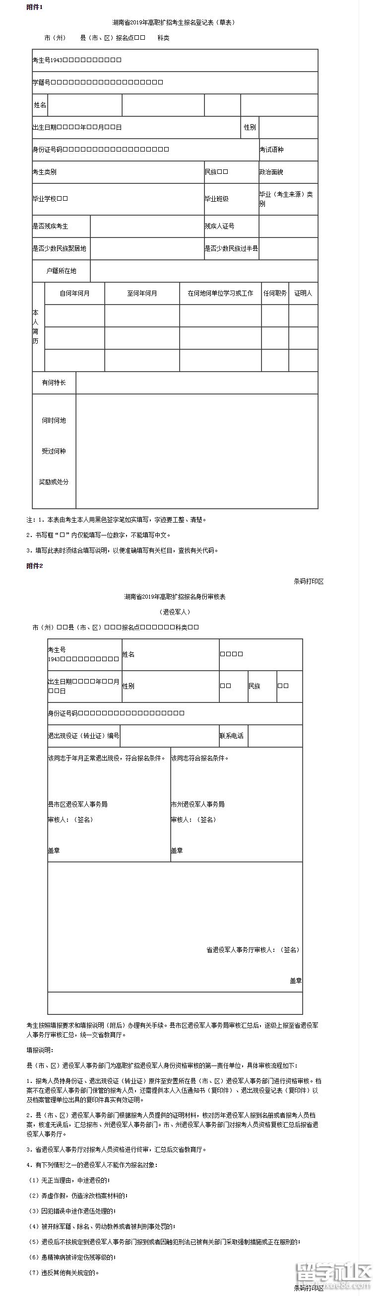 1. 湖南省2019年高職擴招考生報名登記表(草表)