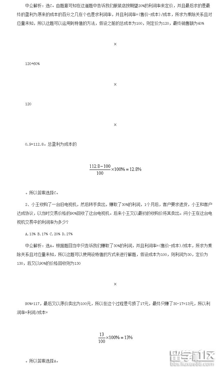 事業(yè)單位行測數(shù)量關(guān)系:特值法巧解利潤問題