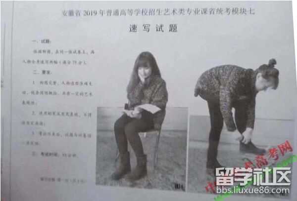 2019年安徽美術(shù)統(tǒng)考速寫試題:同一張試卷上,畫人物全身速寫兩幅